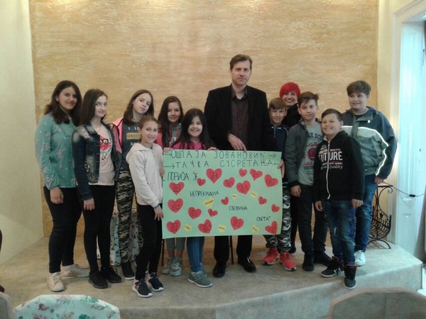 Поводом Светског дана дечје књиге у уторак, 2. априла 2019. године у 17 часова, ученици петих разреда наше школе са наставницом Викторијом Гајта посетили су Удружење “Тачка сусретања”, које је уприличило дружење са актуелним добитником награде “Мирослав Антић”, песником Дејаном Алексићем.