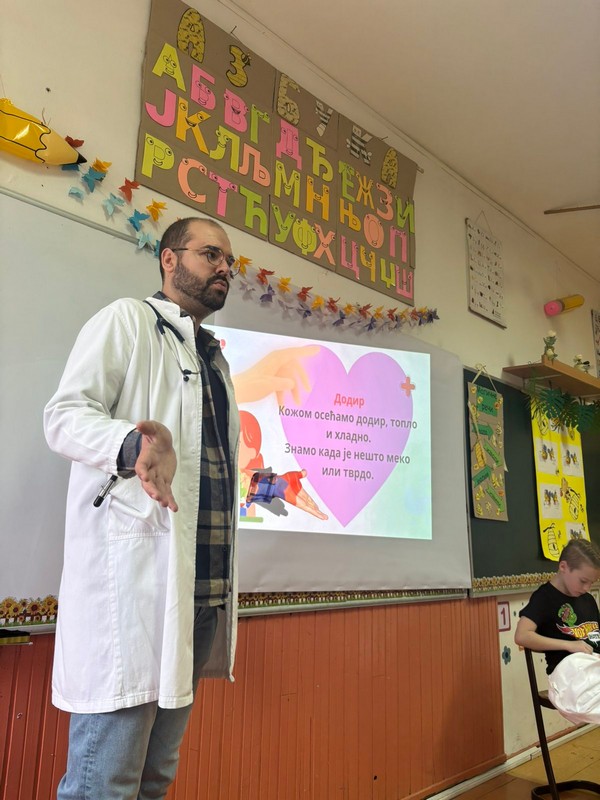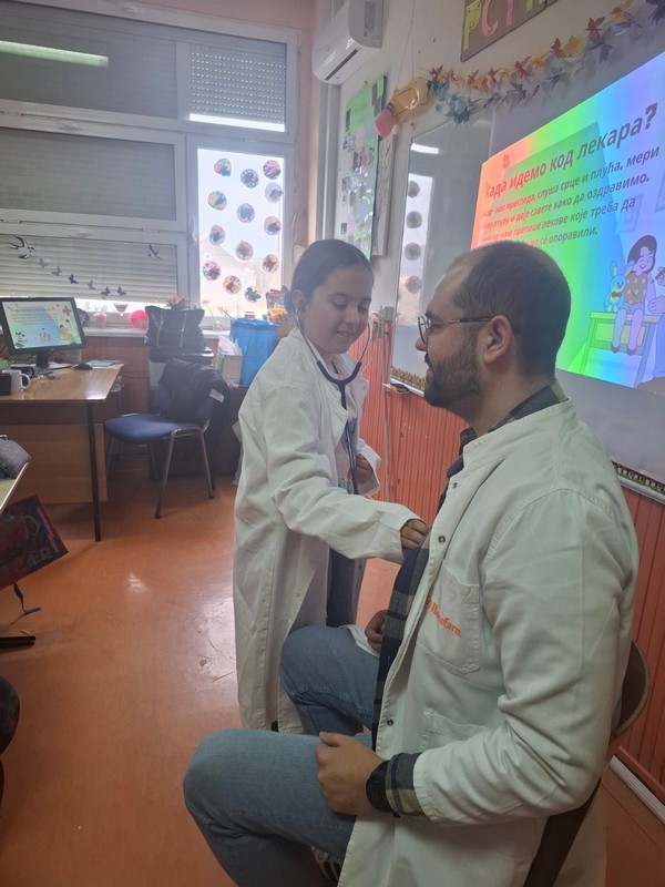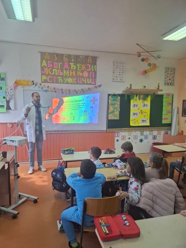 У нашој школи данас је реализована занимљива и едукативна активност за ученике првог и трећег разреда. У госте нам је дошао лекар опште праксе, Матеј Вилотијевић,који је одржао предавање о свом занимању, као и о наставној теми „Човек“, која је део наставних јединица које ученици тренутно обрађују.