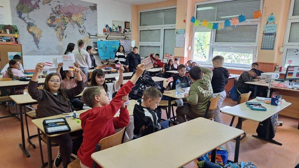У среду, 22.4.2026. године, наставнице Татјана Јакшић и Јасна Вулку одржале су транзициони тимски час географије и немачког језика у одељењима четвртих разреда. Будући петаци обележили су Међународни дан планете Земље, упознали се са предметима који их очекују и добро се забавили уз рециклажу.
